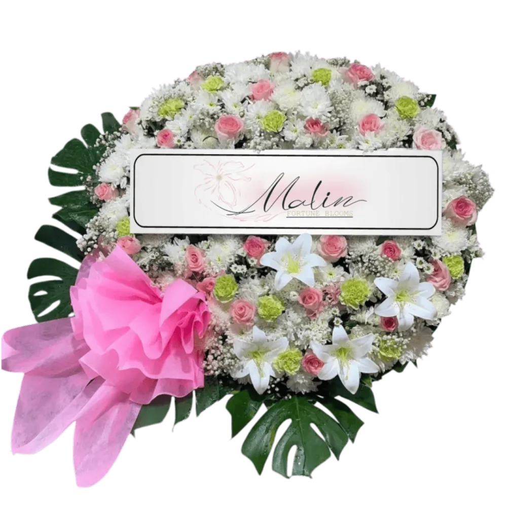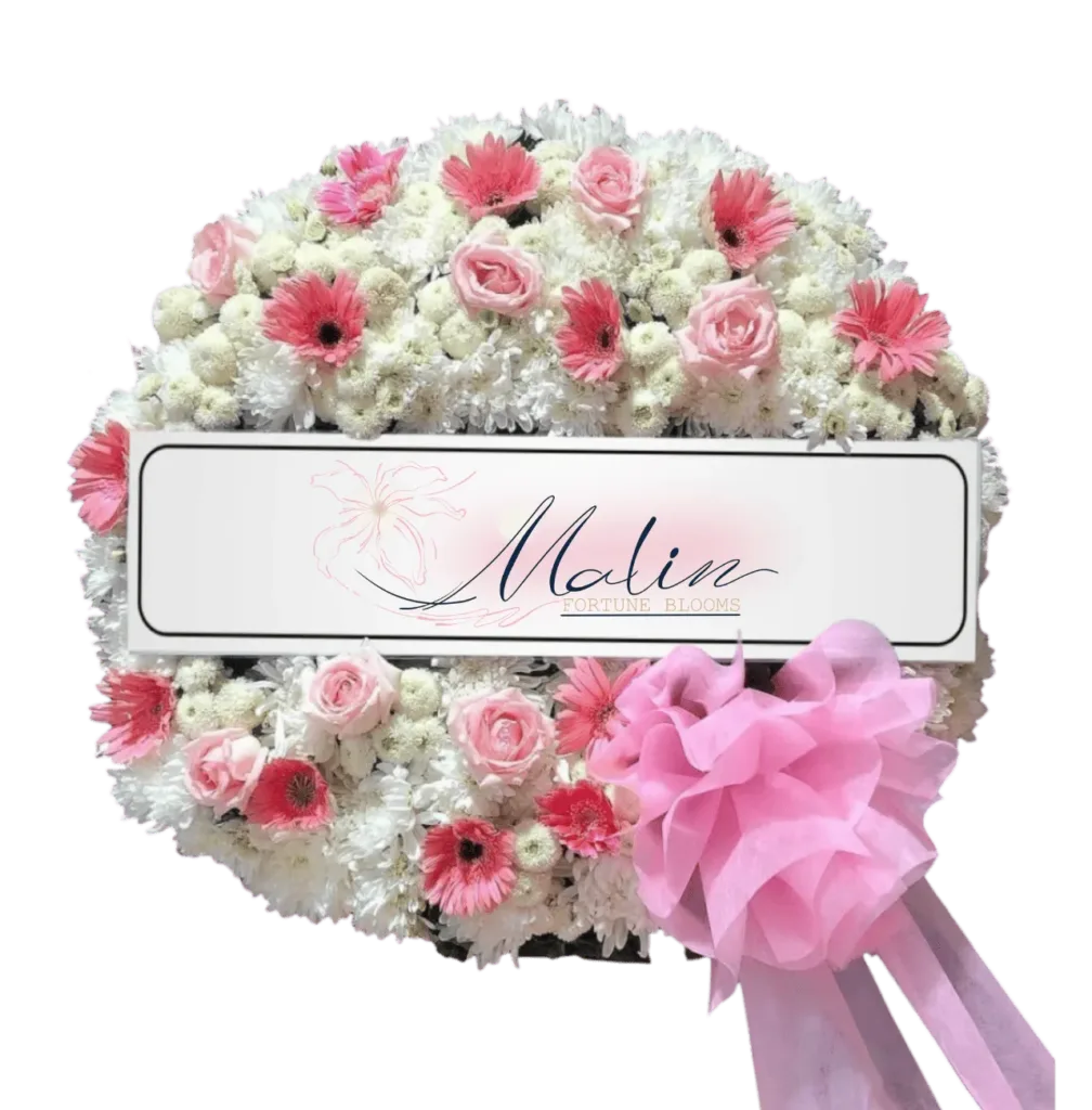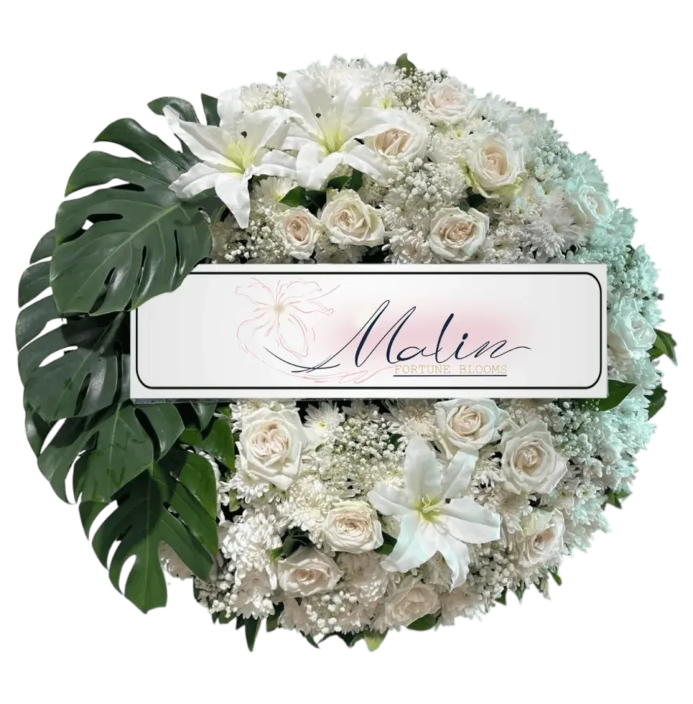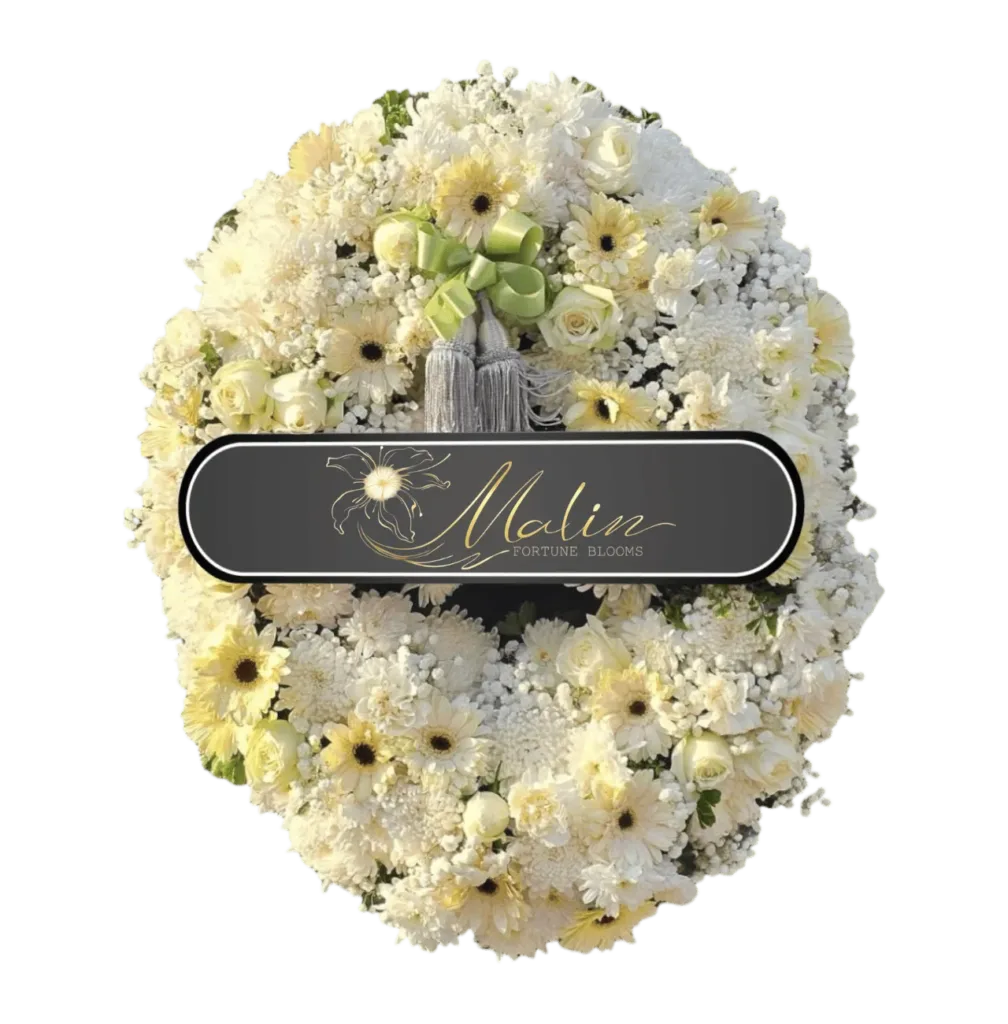 พวงหรีดดอกไม้สด แทนความอาลัย พร้อมจัดส่งให้ถึงศาลาวัด
