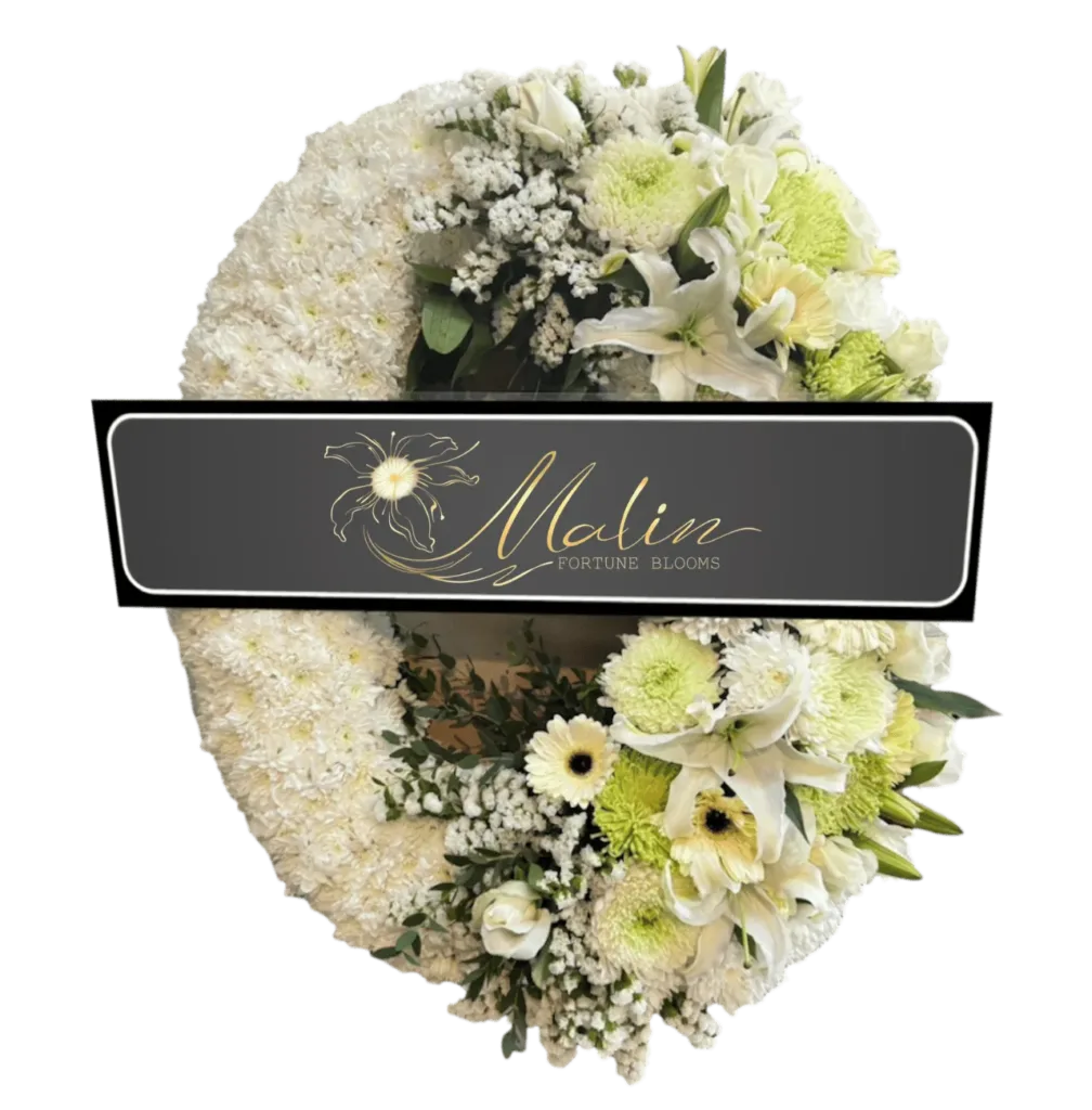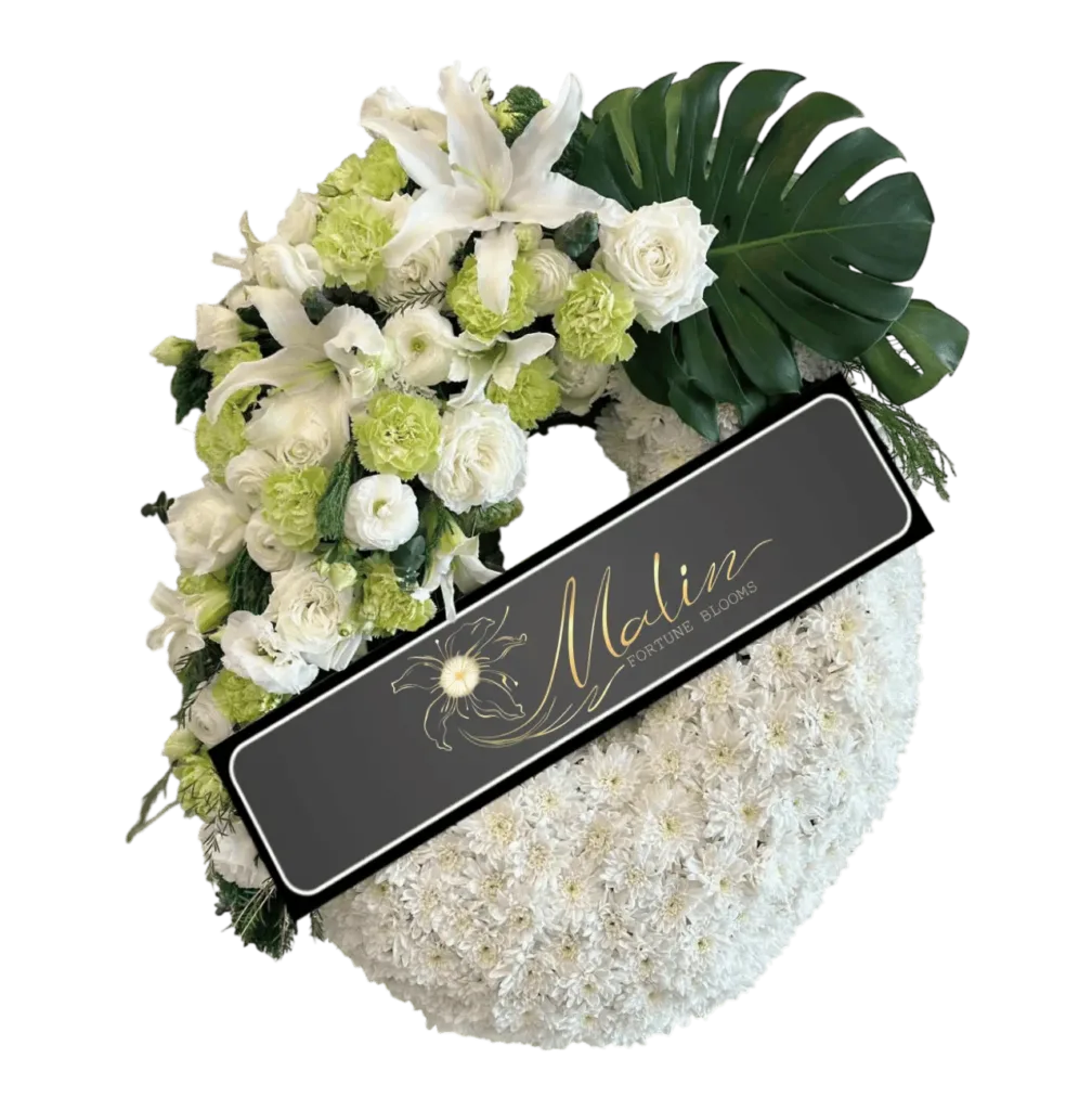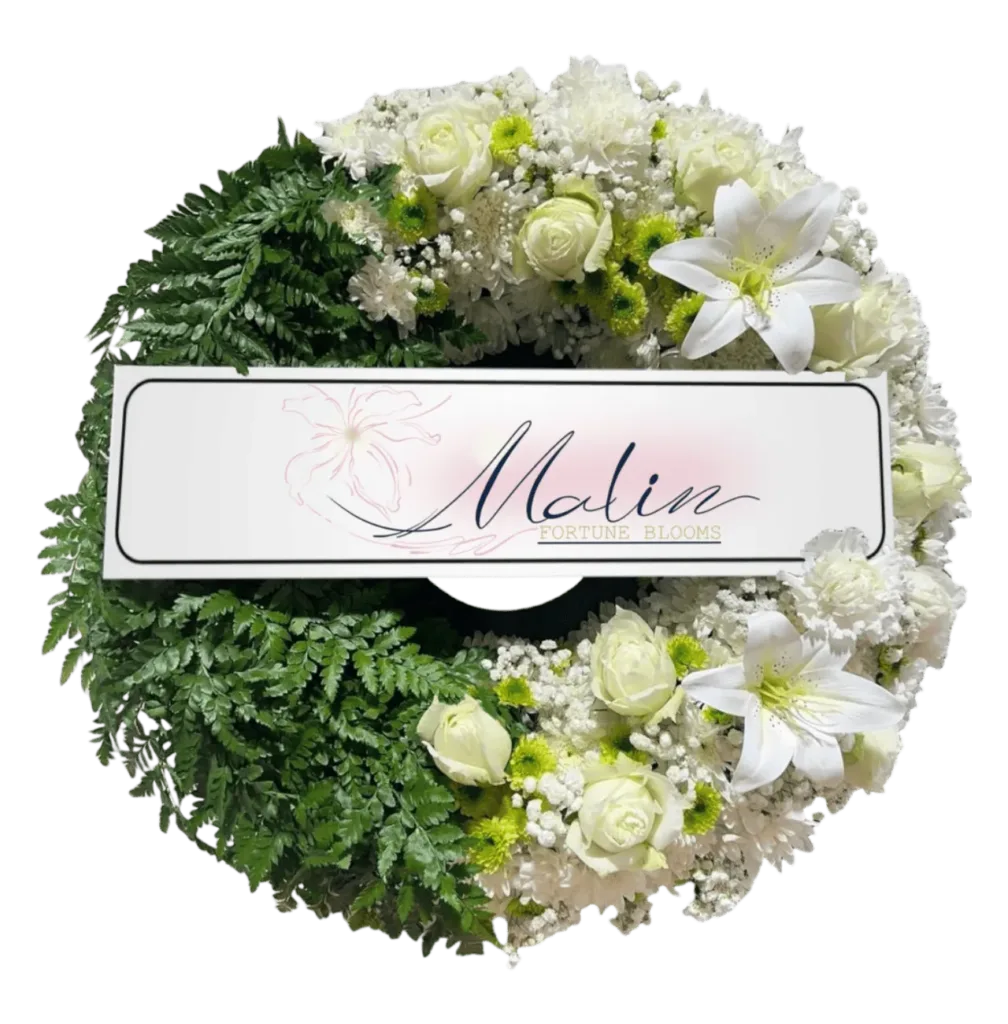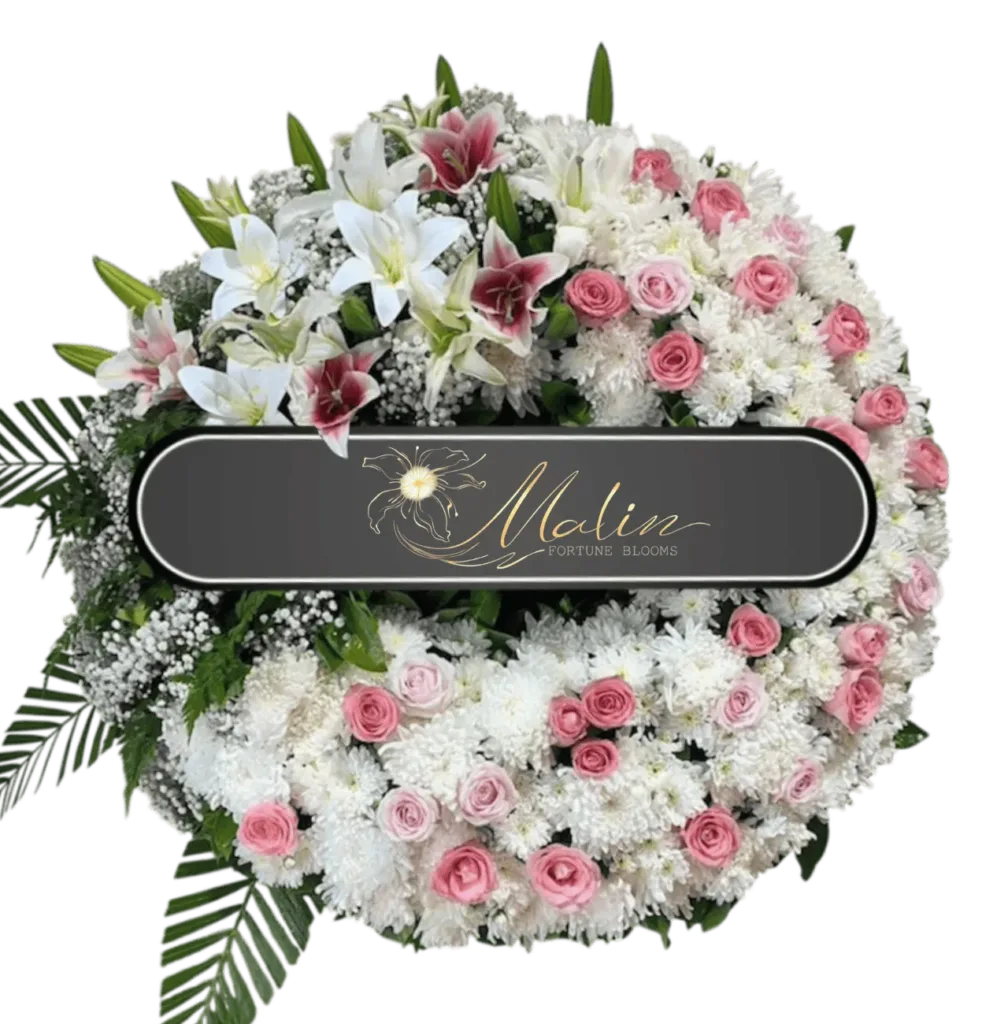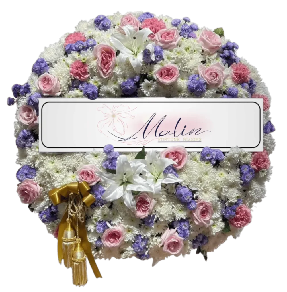 พวงหรีดดอกไม้สด แทนความอาลัย พร้อมจัดส่งให้ถึงศาลาวัด