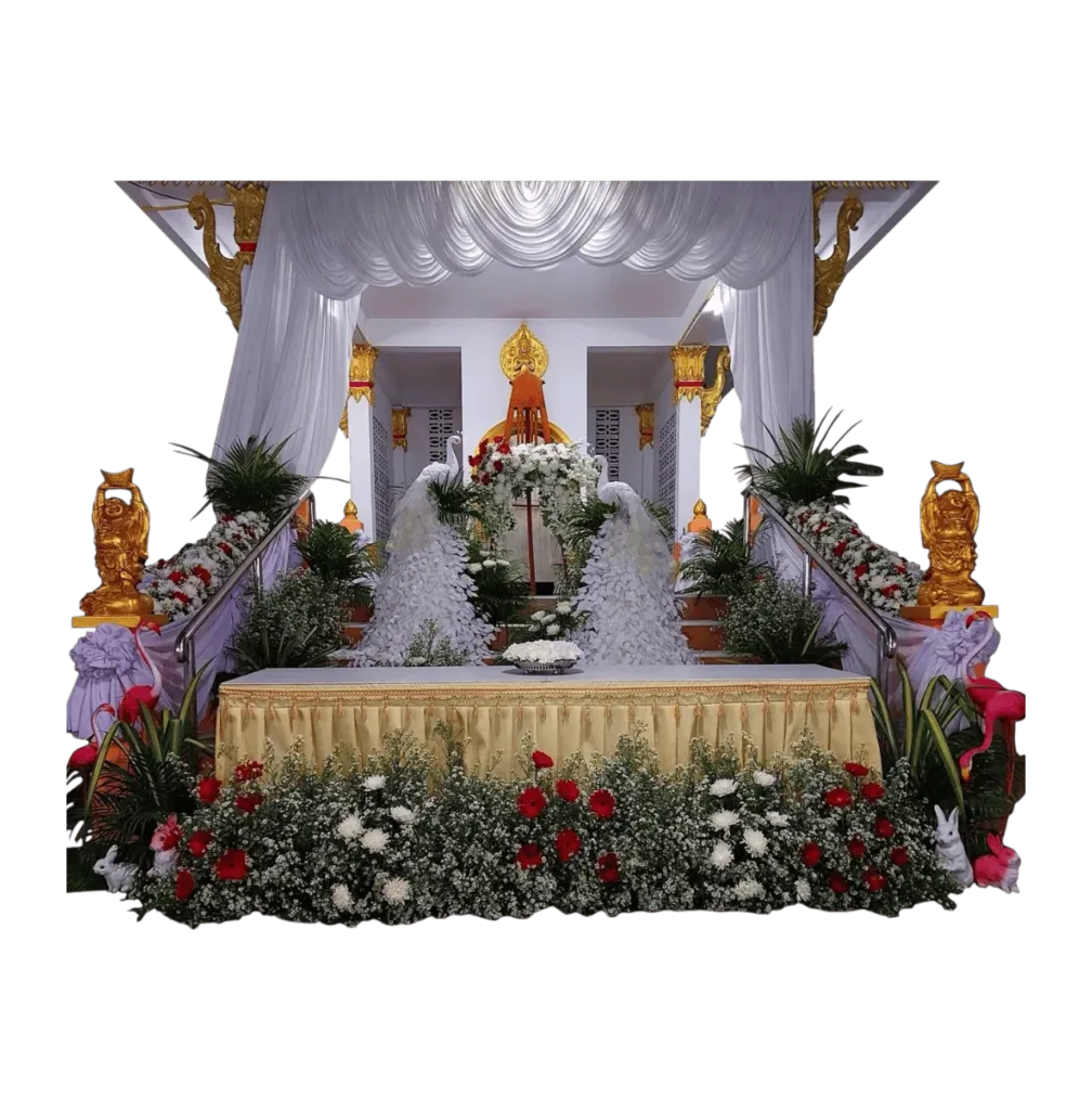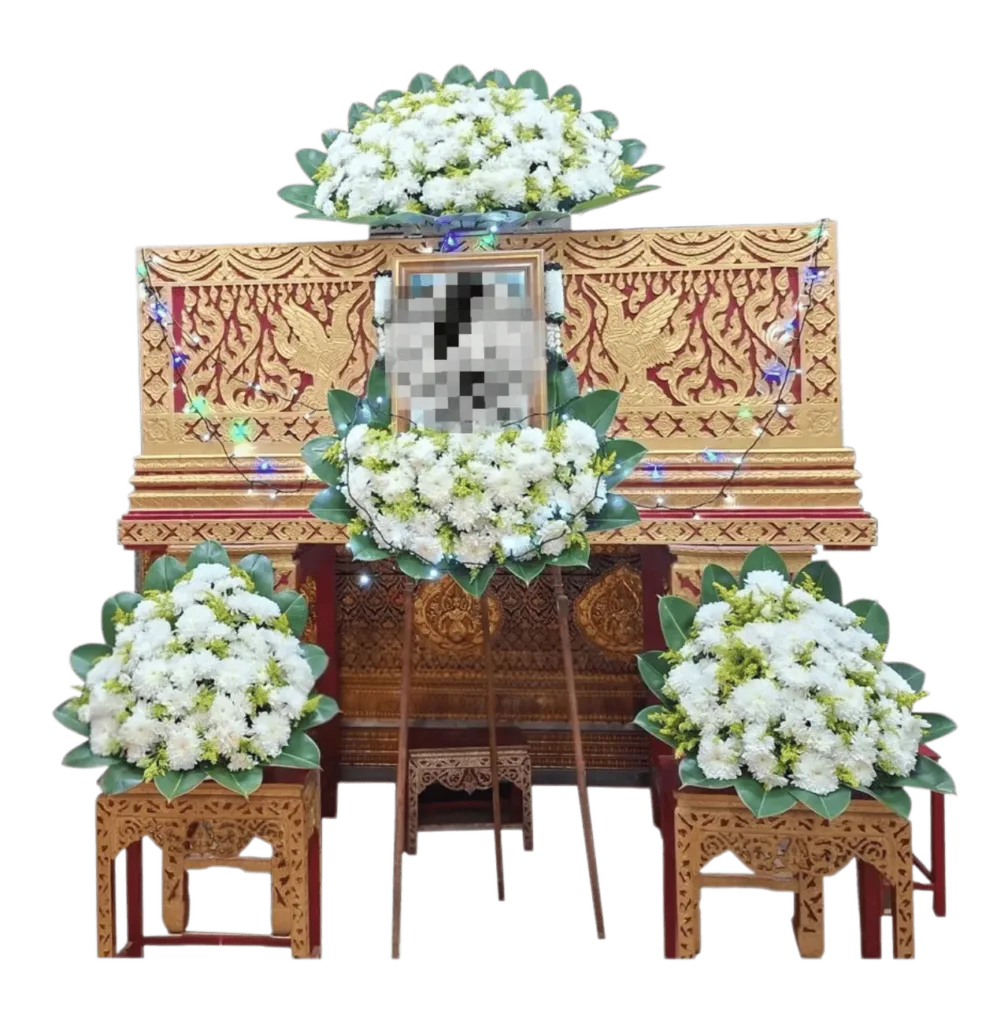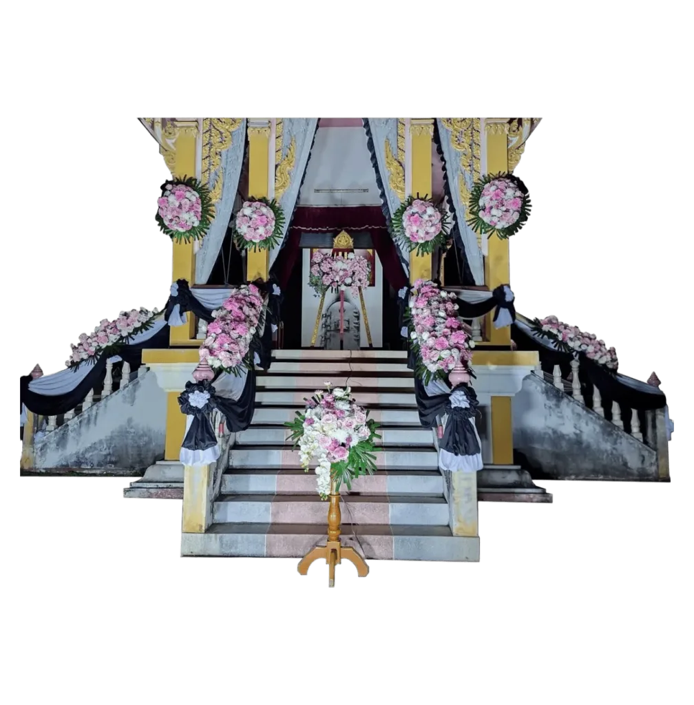 เราคัดสรรดอกไม้คุณภาพดี จัดวางอย่างประณีต พร้อมบริการจัดส่งและติดตั้งถึงศาลาวัด หรือสถานที่จัดงาน ดูแลตั้งแต่เริ่มต้นจนจบพิธี มีหลายรูปแบบให้เลือก ทั้งโทนสีขาวล้วน ขาว-เขียว หรือโทนสุภาพตามความต้องการ สามารถปรับแบบให้เหมาะกับงบประมาณ และรูปแบบงานได้