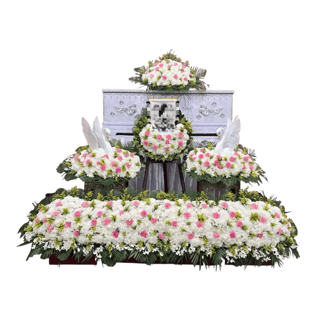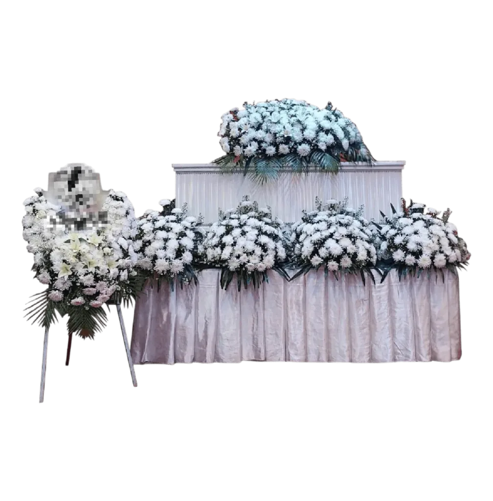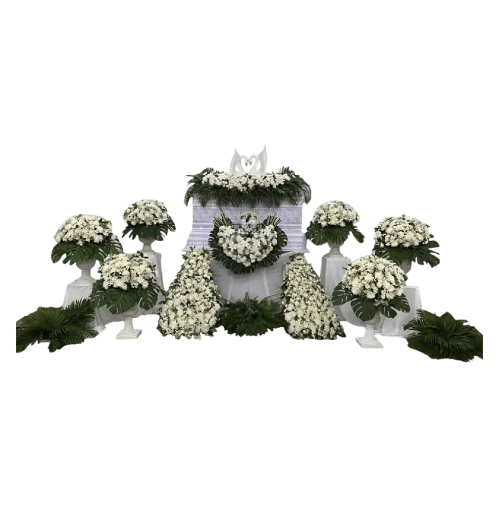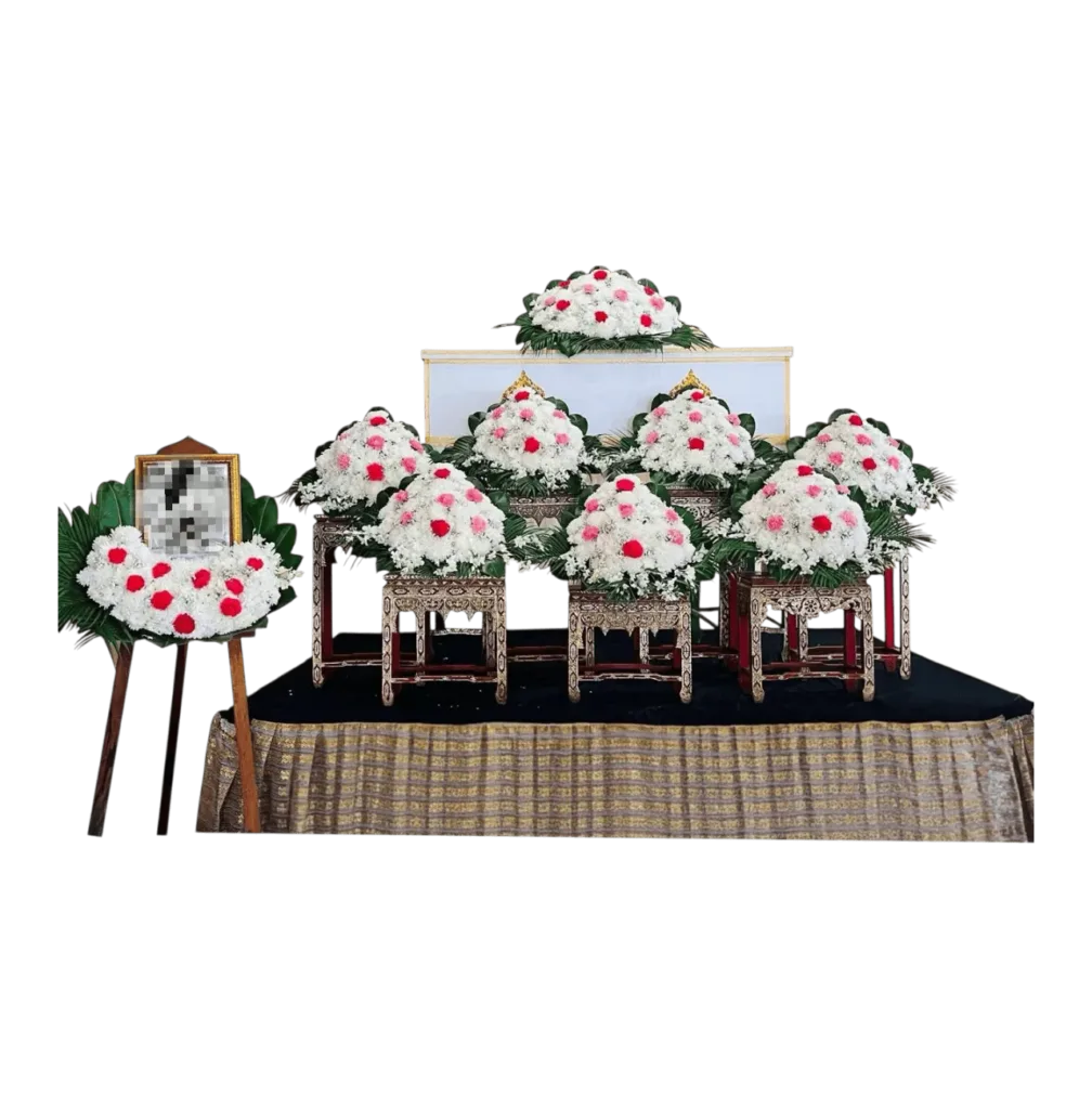 บริการ จัดดอกไม้งานศพครบวงจร ทั้งแบบ จัดดอกไม้หน้าศพ และ จัดดอกไม้หน้าเมรุ ออกแบบโดยทีมงานมืออาชีพ เน้นความเรียบหรู สุภาพ และเหมาะสมกับพิธี เพื่อแสดงความอาลัยอย่างสมเกียรติ