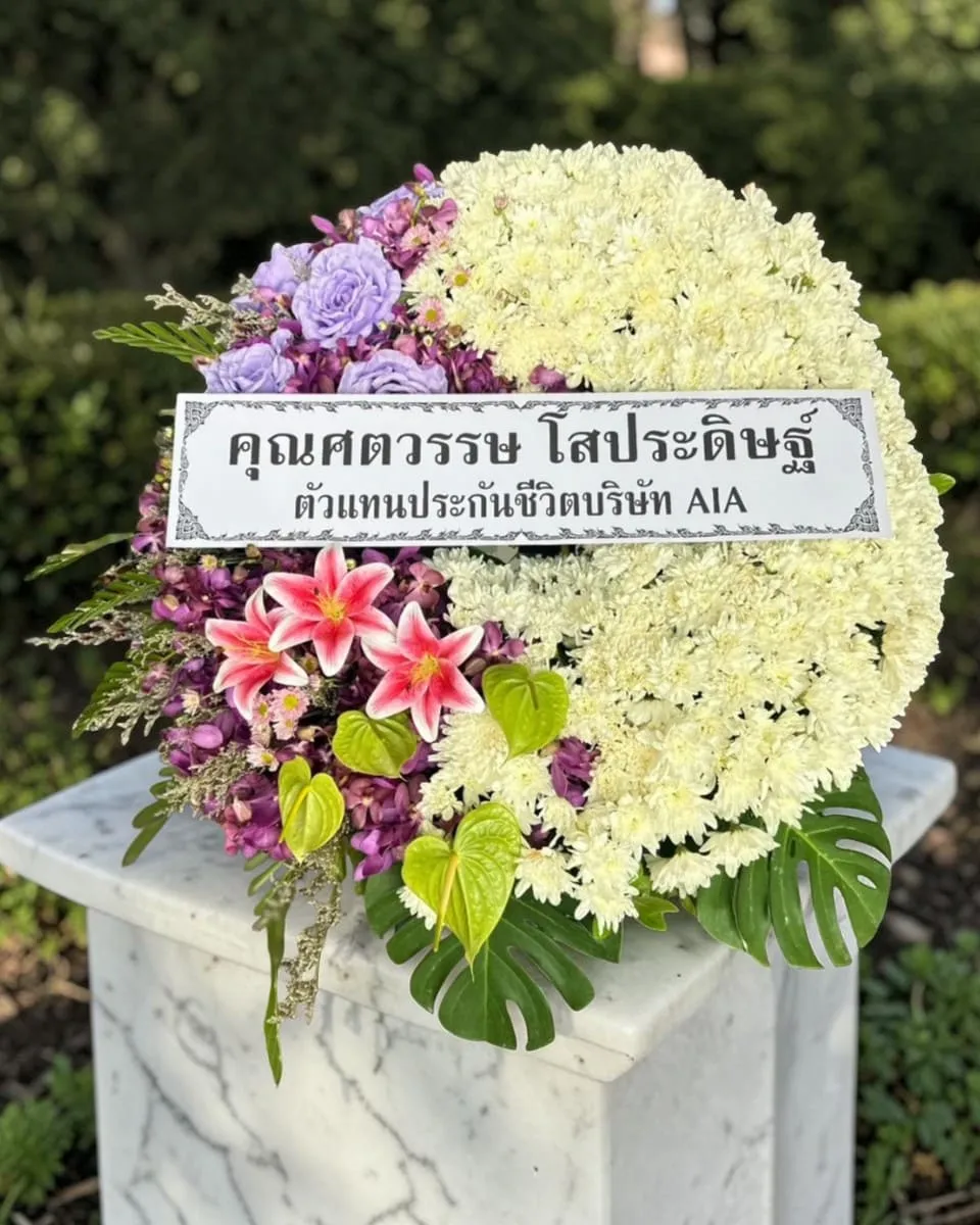 พวงหรีดดอกไม้สด แทนความอาลัยแด่ผู้วายชนม์